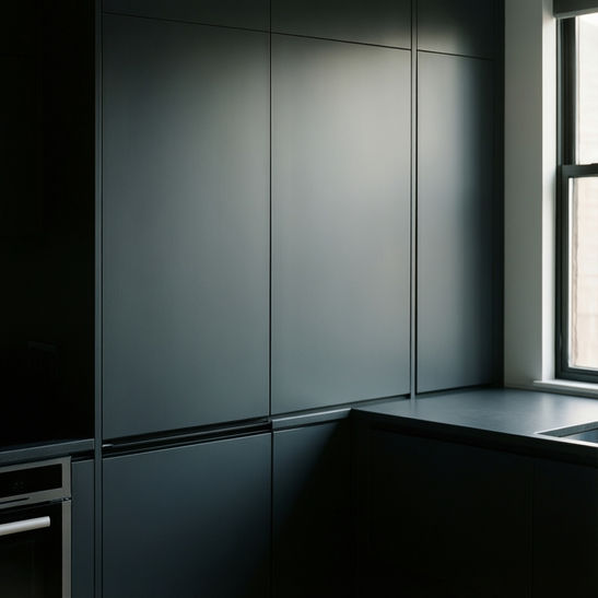 Features a project where dated kitchen cabinets were refaced to achieve a modern look. The description details the process of upgrading the style and functionality, resulting in a sleek, updated kitchen.